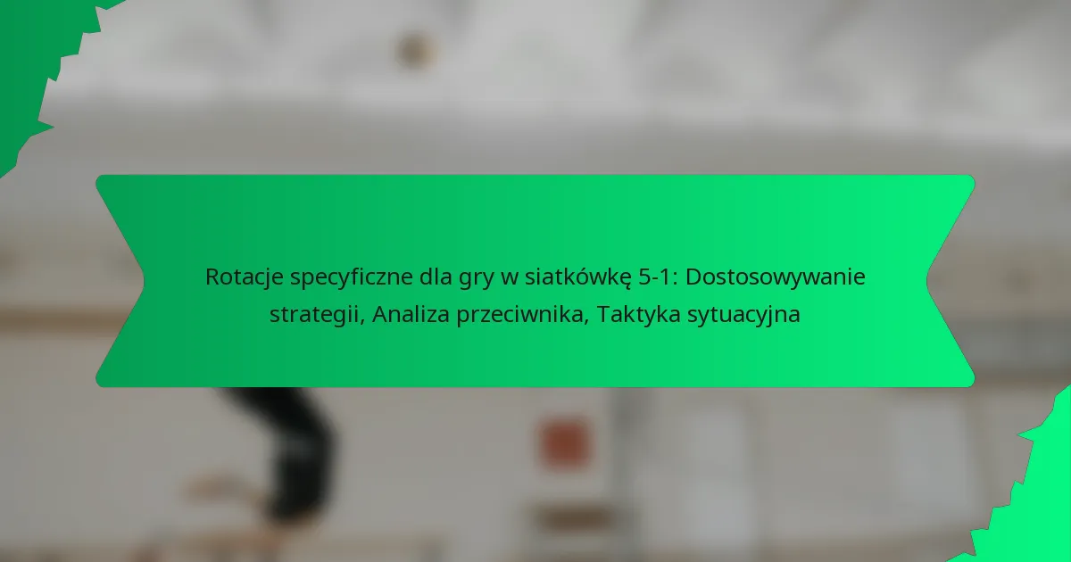 Taktyki sytuacyjne w siatkówce 5-1 polegają na dostosowywaniu strategii w oparciu o aktualne warunki meczu, w tym różnice punktowe, zmęczenie graczy i specyficzne scenariusze gry. Taktyki te są niezbędne do maksymalizacji wydajności zespołu i zapewnienia skutecznych odpowiedzi na mocne i słabe strony przeciwników.