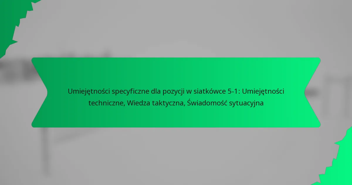 W siatkówce 5-1 opanowanie umiejętności specyficznych dla pozycji jest kluczowe dla optymalizacji wydajności zespołu. Każda rola wymaga unikalnych umiejętności technicznych, wiedzy taktycznej i świadomości sytuacyjnej, które wspólnie poprawiają komunikację i podejmowanie decyzji na boisku. Rozumiejąc te kluczowe aspekty, zawodnicy mogą skutecznie przyczynić się do sukcesu swojego zespołu i dostosować się do dynamicznego charakteru gry.