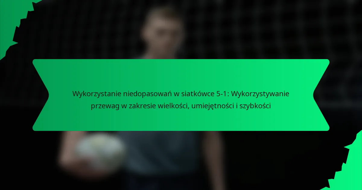 Wykorzystanie niedopasowań w siatkówce 5-1 polega na strategicznym wykorzystywaniu przewag w rozmiarze, umiejętnościach i szybkości, aby przechytrzyć przeciwników. Skuteczne taktyki obejmują formowanie konkretnych składów, poprawę komunikacji między zawodnikami oraz wprowadzanie korekt w czasie rzeczywistym w oparciu o słabości drużyny przeciwnej.